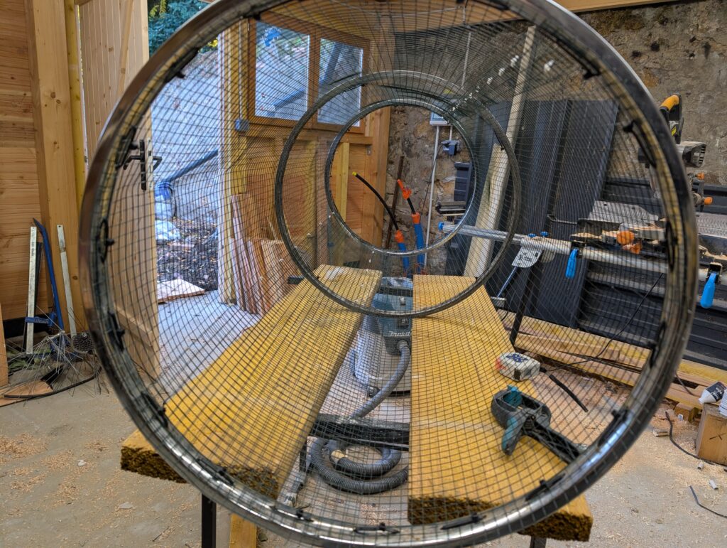 Réalisation du cylindre de 1,5m (spoiler, c’est trop long!). Le grillage se fixe avec des cerflexes