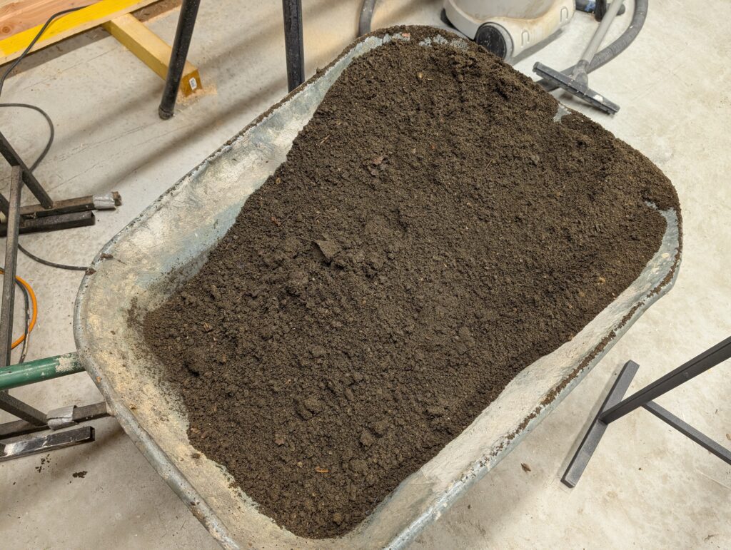 Autre solution, le tamis au dessus de la brouette, que l’on agite de droite à gauche, ca donne rapidement chaud.