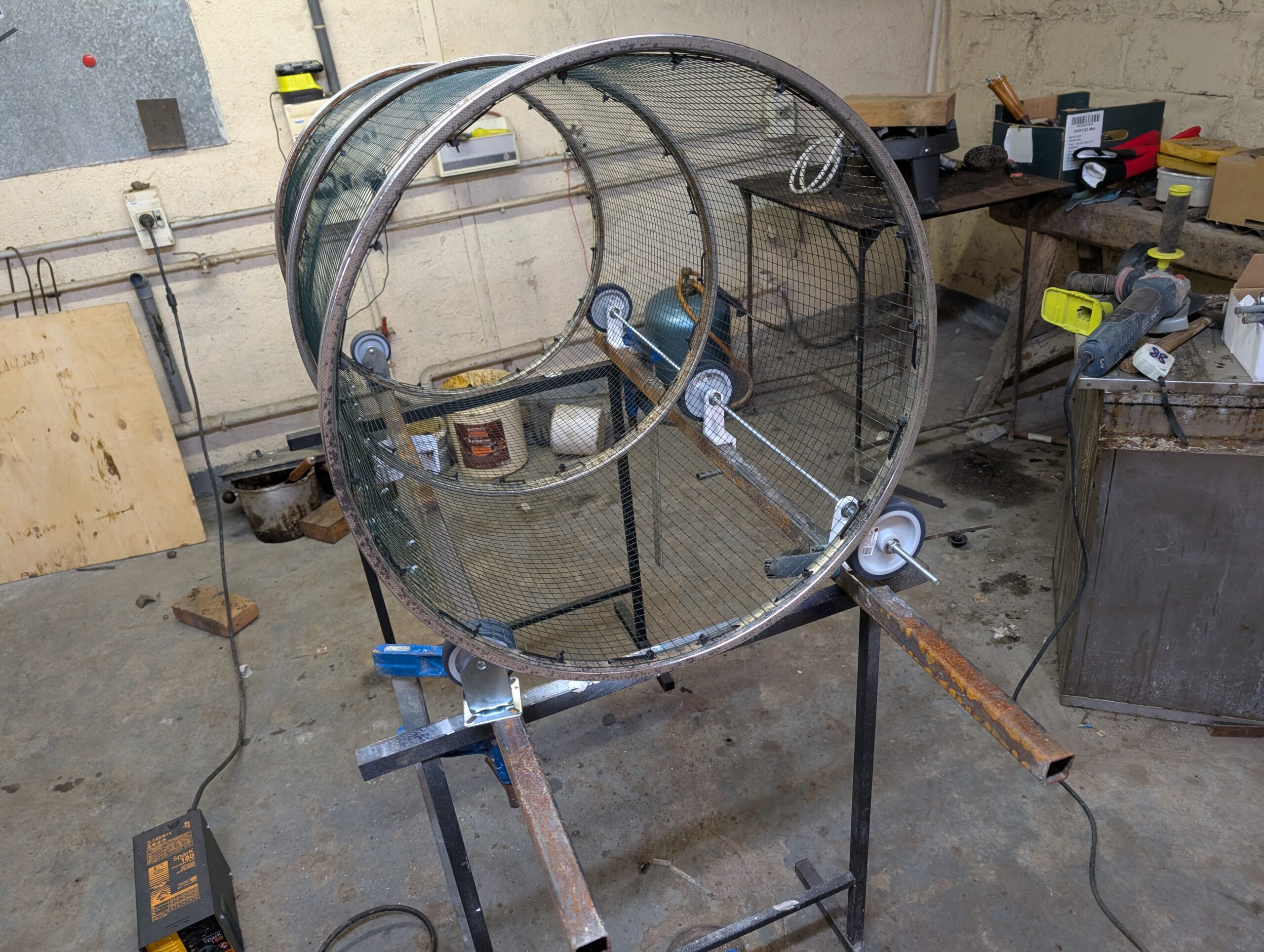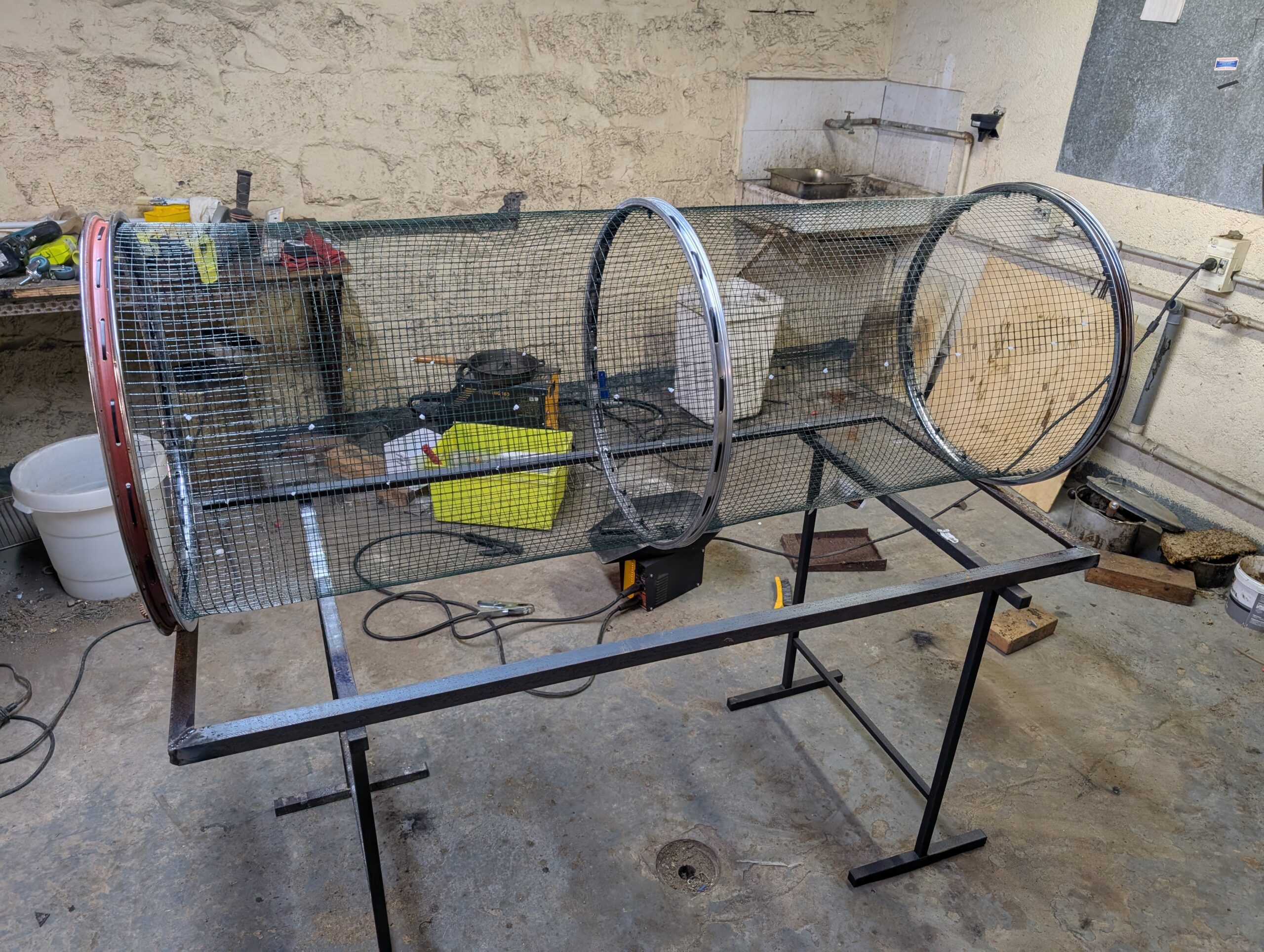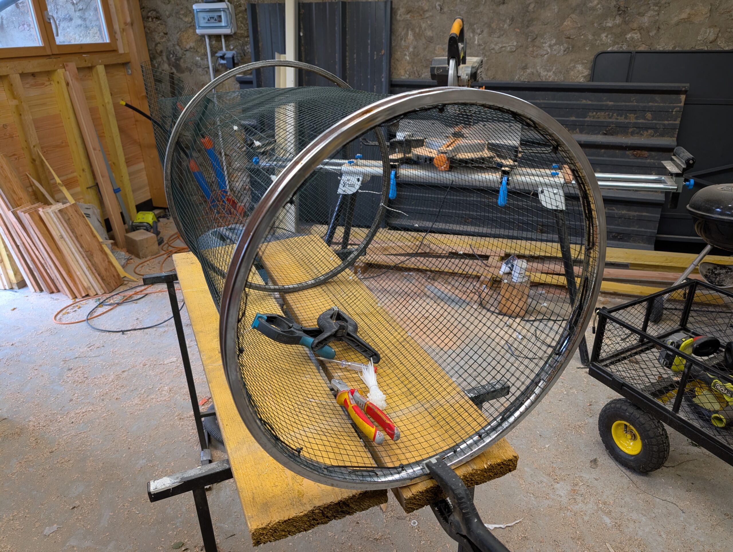 Réalisation du cylindre de 1,5m (spoiler, c’est trop long!). Le grillage se fixe avec des cerflexes