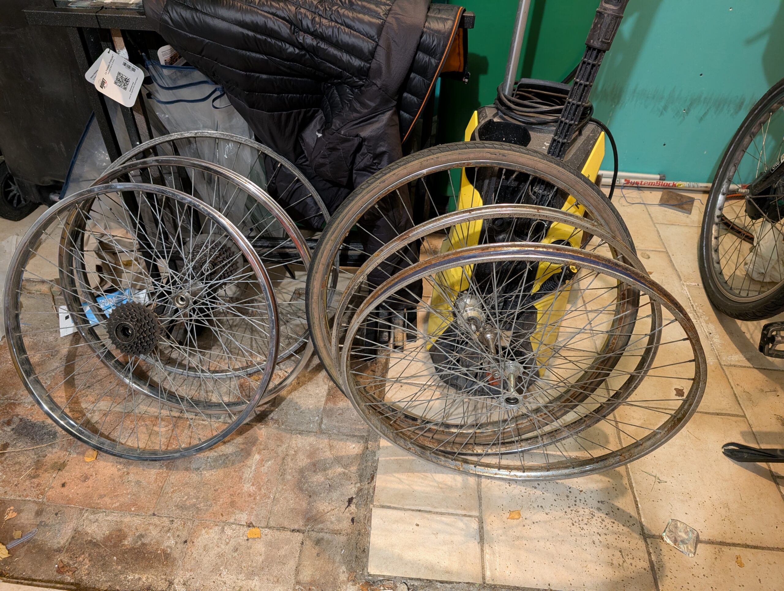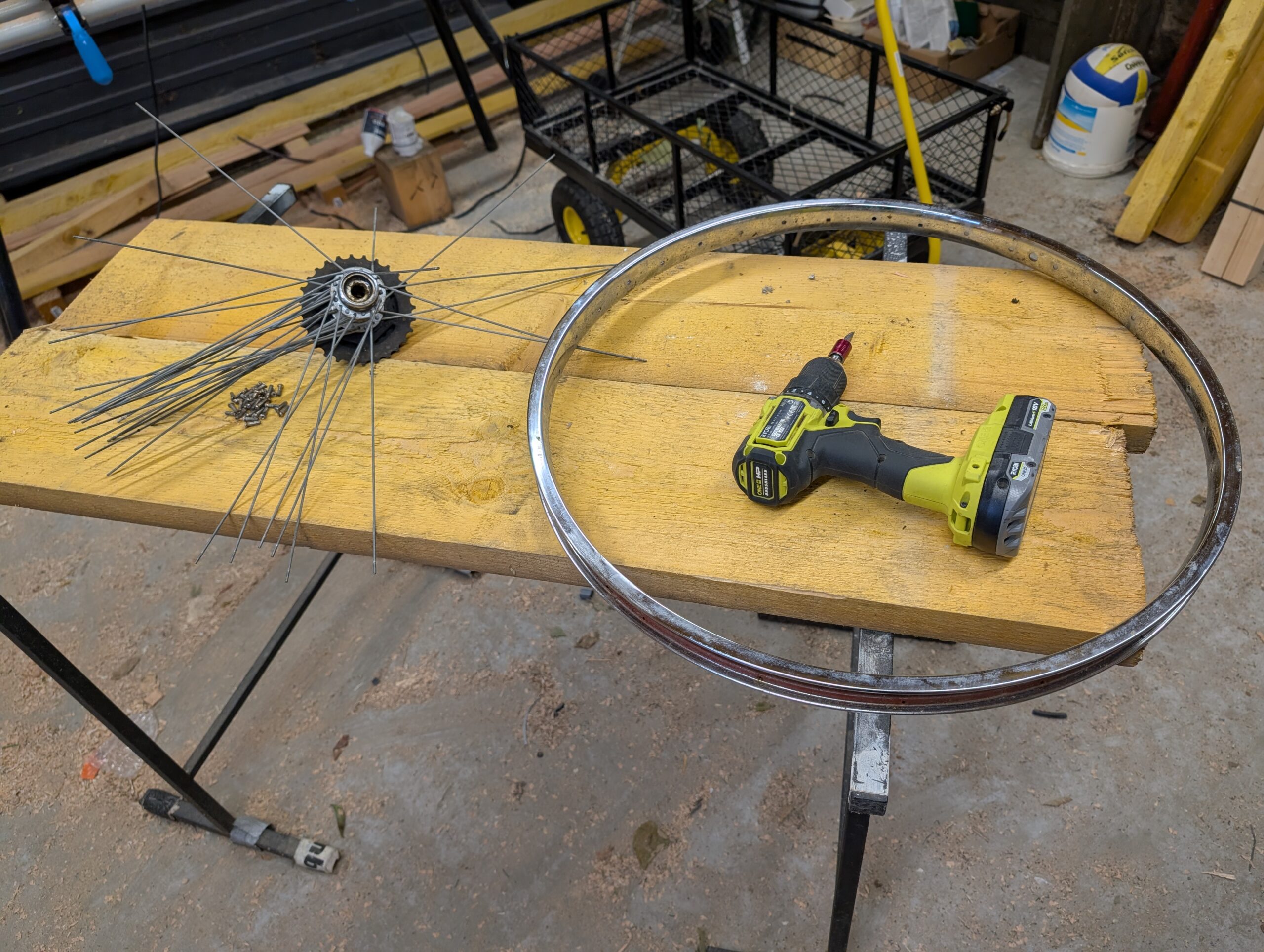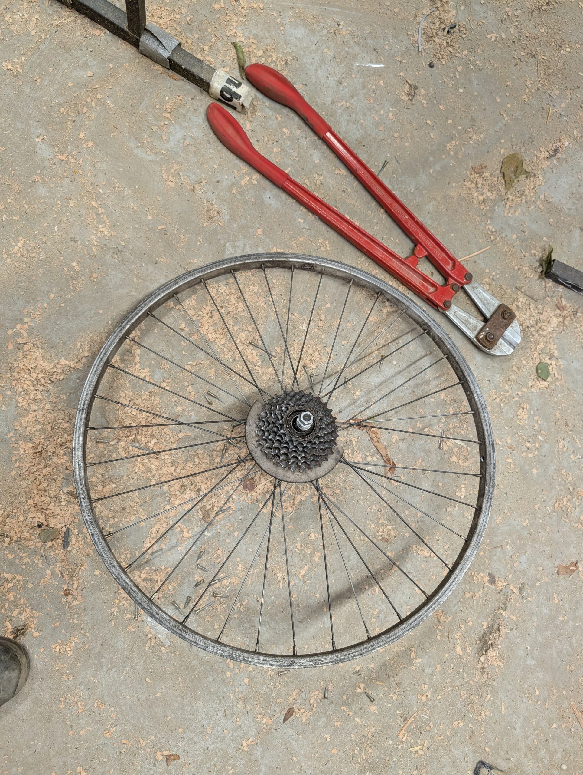J’ai récupéré des vielles jantes de vélo et j’ai acheté 10m x 1m de grillage maille 12mmx12mm